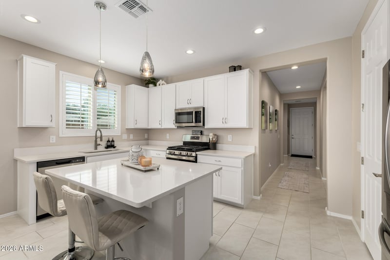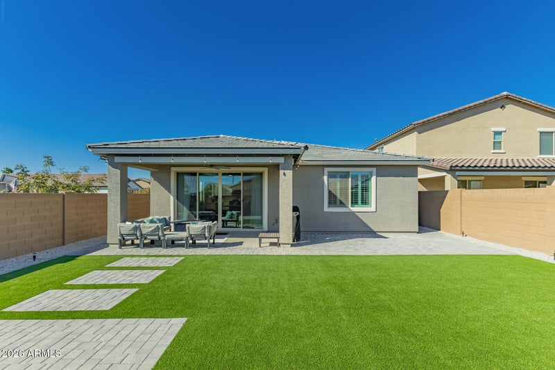 Listing details for 12469 Marlette Ave, Litchfield Park, AZ 85340 : Welcome to this beautifully designed home in a gated, private community in Litchfield Park; thoughtfully upgraded for both comfort and everyday living. From the moment you walk in, the layout makes sense...an open, airy flow with natural light pouring in through additional windows and a spacious great room that connects seamlessly to the kitchen and dining area. The kitchen is the heart of the home, featuring quartz countertops, 42'' cabinetry, stainless steel appliances, a walk-in pantry, and a large island that's perfect for gathering. The split floor plan offers privacy where you want it most, with a generous primary suite tucked away in the back, complete with a walk-in closet and a private bath. Three additional bedrooms give you flexibility for guests, a home office, or whatever The backyard is already done for you, with full landscaping, irrigation, added lighting, and a covered patio with misters, decorative lighting, and a manual sun shade. It is a space you can actually enjoy year-round.