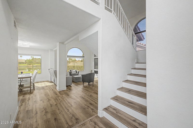 This home offers two separate living areas, a formal dining room, & a kitchen with updated quartz countertops & a cozy breakfast nook. Just off the kitchen, a screened-in Arizona room captures stunning lake views--perfect for relaxing or entertaining.