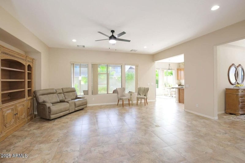 Listing details for 12519 Palo Brea Ln, Peoria, AZ 85383 : Gorgeous Vistancia home* 4 car garage * 2636 sq ft* 4 bedrooms* 2 bathrooms* single level* walking distance to Vistancia Elementary School* top rated A+ Peoria School District* cultured stone front* immaculate condition* 2 newer AC units 2023* newer roof 2022* neutral painted exterior 2018* all upgraded stainless steel kitchen appliances hardly ever used* refrigerator serviced- twice a year* granite slab kitchen countertops* kitchen island* reverse osmosis under kitchen sink* new ceiling fans in master bedrm & great* upgraded water softener in garage* newer garage door opener 2024* large cozy entertaining screened in back patio* close walking distance to beautiful hiking & walking trails* highly desirable beautiful Vistancia community great Vistancia subdivision*two beautiful heated community pools, water slides & splash pads* tennis courts* social spaces* pickleball courts* full size basketball court* workout facility*recreation center* community parks* Discovery Trails 3.5 lighted path trails* Mountain Vista club* and many more* fantastic location* beautiful home!