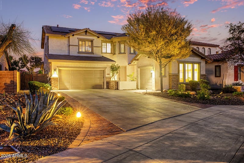 Listing details for 12573 Blackstone Ln, Peoria, AZ 85383 : This beautifully upgraded Picasso model by Shea homes is located in one of Vistancia's most desirable neighborhoods. Set on an oversized lot this home features 4 bedrooms, 3 remodeled bathrooms, den, loft and a 3-car garage. From the moment you arrive, the fresh exterior paint, inviting curb appeal, and extra-long driveway with space to park 4 additional cars creates a strong first impression. Inside tile floors, plantation shutters on every window, solar screens, ceiling fans, custom woodwork, surround sound, and functional layout make this home feel welcoming. A den and loft offer the flexibility for a home office, gym, media room, guest space, or playroom. The kitchen is the heart of the home, featuring stainless steel appliances, custom backsplash, upgraded hickory cabinetry, granite countertops, a custom extended island, and an open design that makes everyday living and entertaining effortless. Thoughtful upgrades continue throughout with a gas fireplace, Bose surround sound, a security system, Classy Closets, garage cabinets, and a laundry sink.