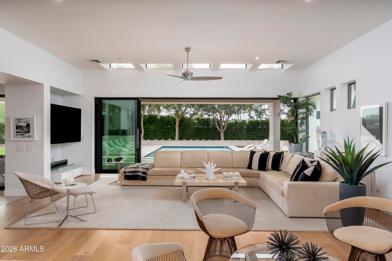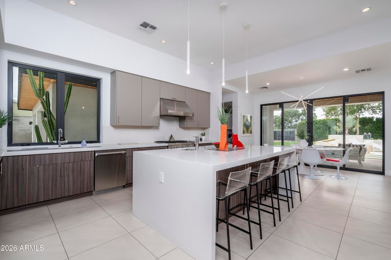 Listing details for 12624 68th St, Scottsdale, AZ 85254 : Magazine-worthy modern home in the heart of Scottsdale within 1 mile of premier shopping and restaurants. This like-new construction offers 4 bedrooms plus office and 3.5 baths on over half an acre. Features include new roof, new exterior paint, engineered wood flooring, and 24-inch porcelain tile. Designed for indoor-outdoor resort living with retractable sliding glass doors opening to a private backyard with pergola, outdoor lounge with TV, built-in grill, fire pit, lap pool, spa, lush green landscaping, and limestone decking. Chef's kitchen with Thermador stainless steel appliances, quartz countertops, custom cabinetry, oversized island with dual sinks, gas cooktop, and gas tri-view fireplace. Scottsdale luxury living at its finest.