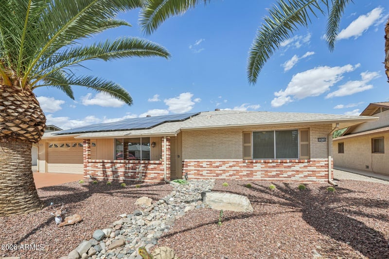 Listing details for 12634 Paintbrush Dr, Sun City West, AZ 85375 : This home is the popular Woodbury that has been expanded to 1634 square feet! The former patio is now seamlessly a part of the home, and a screened porch was added at the back - a perfect spot for your morning coffee. The front yard has curb appeal with the updated landscaping and pavers. The laundry room is massive and could easily be used as an office, hobby room, or - with a Murphy Bed or a Sofa sleeper - another guest bedroom. There is a new fenced dog run along the side of the home. The flooring is large tiles throughout the home, except for the bedrooms, which are carpeted. The guest bath has a welcoming medical tub. On top of all of that, there are 31 solar panels with an attractive solar lease that does not escalate.