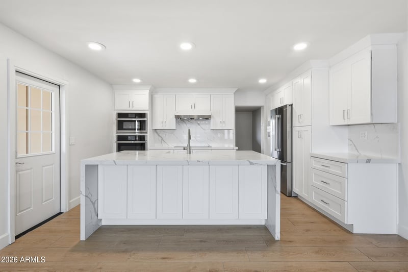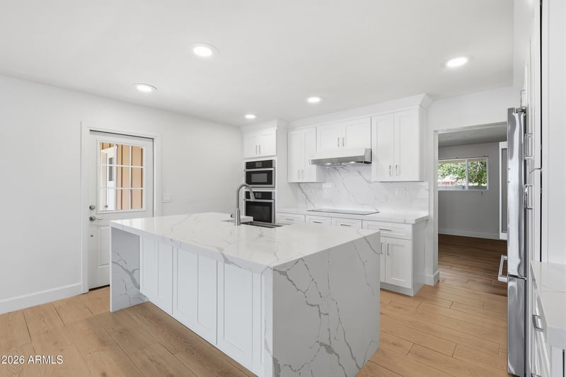 Listing details for 12656 30th Dr, Phoenix, AZ 85029 : This Charming Home is Sure to Impress! Featuring a GORGEOUS Custom Remodeled Kitchen that will WOW you with its Stunning Quartz Waterfall Island, offering Generous Seating Space for Gathering in the Heart of the Home. This Dream Kitchen has Plenty of Beautiful White Shaker Cabinets and Countertop Space, the Modern Stainless Steel appliances include an energy efficient Induction Cooktop. As you continue to move throughout the house, notice the Beautiful tile flooring, guiding you into the large primary suite where you will find an updated en-suite with a large vanity and step-in tiled shower. Outside you will enjoy the cozy covered patio and lush green grass while spending time with friends and family or relaxing on your own. The backyard is fully equipped with a storage that can be used as a workshop and an RV Gate. This great home is conveniently located near restaurants, shopping and freeways. It won't last, hurry to view before it's gone!
