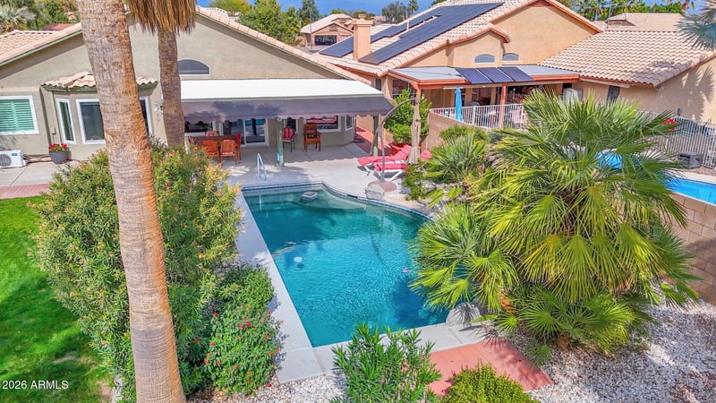 Listing details for 12705 Virginia Ave, Avondale, AZ 85392 : Your search is over with this stunning Avondale home, with a pool and exceptional outdoor living this is it. Designed for true Arizona resort-style living, the backyard is the showpiece. Enjoy a stunning PebbleTec pool surrounded by lush, professionally designed landscaping. The extended covered patio creates a comfortable space for entertaining, relaxing, or enjoying quiet evenings in your own private oasis w/ an extended awning. This isn't just a backyard, it's a lifestyle upgrade. The home has been meticulously maintained, with major updates already completed, including: Updated A/C system, Updated windows, Newer carpet in bedrooms, Newer LVP floors, Newer water heater. Vaulted ceilings and bay windows create natural light. Elegant 18-inch diagonal tile adds a modern touch throughout. With a 3car garage offers ample space for vehicles, storage, or hobbies, complete with easy attic access and a service door for added convenience. Professionally redesigned backyard landscaping Located near quality schools, shopping, dining, and community parks, this home offers both comfort and accessibility. Rancho Santa Fe is one of Avondale's most desirable neighborhoods, known for its balance of convenience and tranquility. Homes with this level of care and upgrades don't last long.