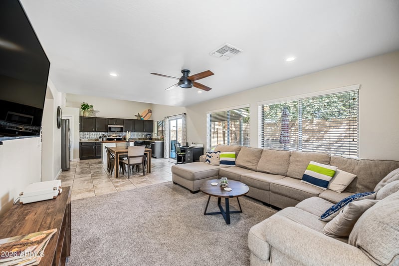 Step inside to a bright, welcoming layout featuring a living and dining area just off the entry. The heart of the home is the open-concept kitchen with stainless steel appliances, which seamlessly flows into a spacious great room flooded with natural light--perfect for everyday living and entertaining.