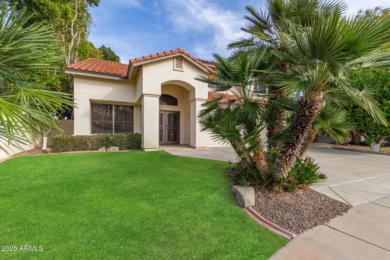 Listing details for 12803 57th Ave, Glendale, AZ 85304 : True pride of ownership in the sought-after Marshall Ranch neighborhood. Welcoming curb appeal w/ mature citrus trees set the tone for this immaculate home. Inside, enjoy a stunning kitchen with top-tier cabinetry, SS appliances, granite countertops, island, & pantry. The main level offers both living and family rooms, plus a bedroom and FULL bath. A beautiful double staircase leads up to a spacious primary suite w/ separate tub & shower, private toilet room, and walk-in closet. Also, a large loft, additional bedrooms, and full bath with double vanity. Features include newer AC units, plantation shutters, and ceiling fans. On an oversized lot, the backyard retreat boasts a travertine patio, shade trees, and watering system. Ample storage and 3-car garage complete this move-in-ready home.