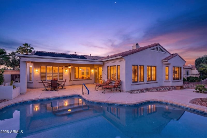 Listing details for 12837 Micheltorena Ct, Sun City West, AZ 85375 : Beautiful Maintained Home is The Highly Sought-After Cambria Model. Features Detached Casita w/ Privacy for Guests. From the Moment You Step Inside, You'll See Elegant Upgrades & Features. Freshly Painted w/ Acacia Hardwood Floor in all Bedrooms. Kitchen has Granite Counters, Sky Light, Above & Under Cabinets Recessed Lights, 2 Ovens, R/O Water System, New Disposal, Seated Breakfast Bar & Pull Out Shelving w/Cabinets. Also Plantation Shutters T/O, Culligan Water Softener, Massive Laundry Room w/ High End Maytag Washer/Dryer w/ Granite Counter, Bar Area, Flex Room. Garage is Extended 8 Feet & has an A/C Mini Split keeping it Cool All Year Long. Plus Work Bench, Overhead Storage & Tons of Cabinets. Outdoors: Solar Heated Pool w/Waterfall. 25X10 Retractable Shade Awning, New Built-in Barbecue