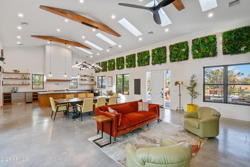 Outside, enjoy a truly unique setting with a small-scale vegetable farm, framed by inviting sitting & entertainment spaces and lots of exterior lighting. The back of the property includes a huge, fenced area perfect for farming, horses, chickens or many other options. Includes a back pad set with power for possible casita, workshop, pool/spa, etc.