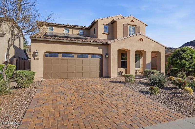 Listing details for 12932 Cassia Trl, Peoria, AZ 85383 : Welcome to this 2,948 sq ft, 4 bedroom + Office and Loft, 3.5 bath home in the desirable Vistancia community. The flexible layout features a private downstairs bedroom with its own en-suite bath, while the spacious primary suite is upstairs for added privacy--ideal for guests or multigenerational living. The kitchen is the heart of the home with a large granite island, gas cooktop, white cabinetry, and convenient pull-out storage, plus extended pantry space. Open living areas create an easy flow for everyday living and entertaining. A front office and oversized upstairs loft provide versatile space, while plantation shutters add timeless style throughout. The backyard offers natural grass, a pergola for shaded gatherings, a storage shed, and fully owned solar for energy efficiency. Located in the master-planned community of Vistancia, residents enjoy access to walking trails, parks, pools, community centers, and nearby schools. Convenient access to shopping, dining, and Loop 303 adds to the appeal of this sought-after Northwest Peoria location.