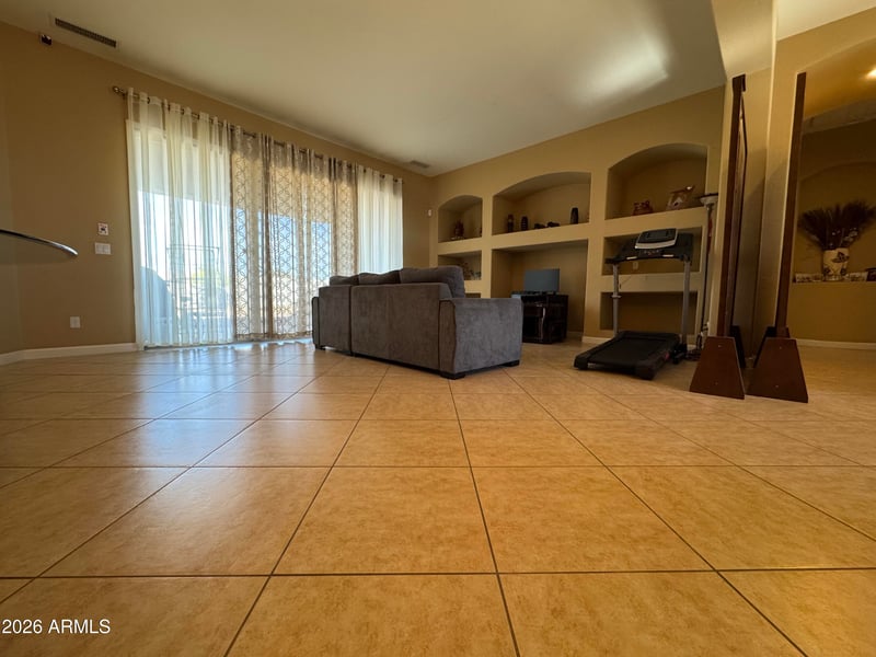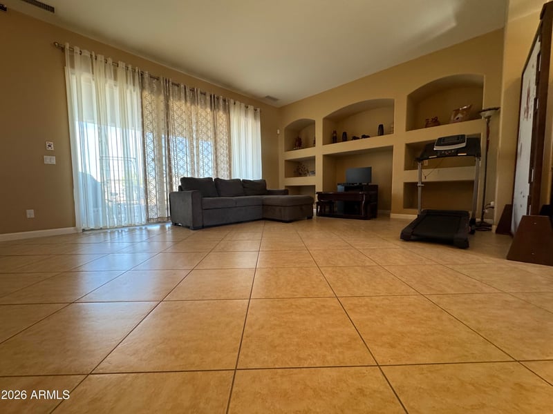 Listing details for 13006 Colter St, Litchfield Park, AZ 85340 : Welcome to this beautiful semi-custom residence situated on an expansive 13,591 sq ft lot, offering over 3,800 sq ft of living space. This stunning single-family home features 3 bedrooms plus a spacious office/den, 3 full bathrooms, and a massive upstairs loft that can be used as an additional bedroom, office, media, or entertainment space—endless possibilities. The first floor includes a formal office, generous living areas, and an open-concept gourmet kitchen with stacked maple cabinetry, granite countertops, a smooth-top range, built-in oven, and cocktail/coffee bar. The kitchen opens seamlessly to the Great Room, formal living area, and formal dining room—ideal for entertaining.