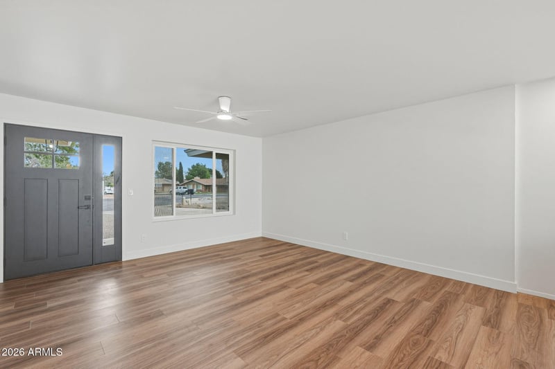 Listing details for 1304 Hackamore St, Mesa, AZ 85203 : Immaculate and completely renovated 4-bedroom, 3-bath home in Candlelight Estates with no HOA, ideally positioned on an oversized cul-de-sac lot. This 2026 remodel features a thoughtfully redesigned kitchen with custom white shaker cabinetry, updated backsplash, new stainless-steel appliances, sleek countertops, and luxury LVP wood flooring throughout the main living areas. Fresh interior paint, new baseboards, recessed lighting, updated plumbing and lighting fixtures, and new interior and exterior doors create a cohesive, elevated finish from start to finish. Hall bedrooms include new carpet, and added hallway cabinetry provides extra storage and functionality. The spacious split floor plan offers comfortable single-level living with no interior steps. A newly added third bathroom with direct pool access enhances convenience and flexibility. Step outside to your private backyard retreat complete with a sparkling blue pool, refurbished pool pump, new pavers, RV gate and massive side yard, refreshed landscaping, and a covered patio featuring a beautiful tongue-and-groove ceiling--perfect for relaxing or entertaining. Move-in ready and conveniently located near freeways, top-rated schools, parks, trails, golf, dining, and shopping, this exceptional Mesa home delivers space, style, and location all in one.