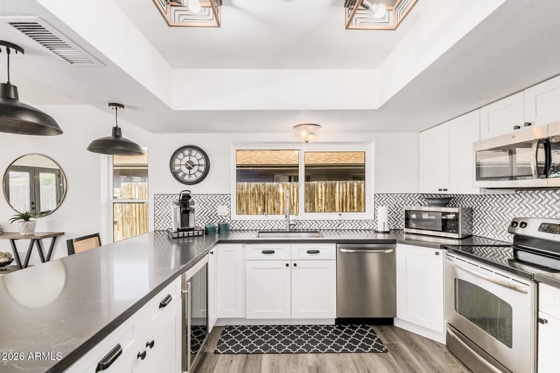 Listing details for 1311 Pecos Ave, Mesa, AZ 85202 : Fully RENOVATED Ranch - No HOA. This 3-bed, 2-bath ranch was completely gutted and rebuilt in 2021 -- new kitchen, bathrooms, flooring, and finishes throughout - giving it the look and feel of a new home without the new construction price tag. A NEW HVAC (2024) and NEW ROOF (2025) with a fully transferable warranty round out the major systems, giving you confidence from day one. At 1,773 square feet, the layout is comfortable and inviting, with abundant natural light throughout. Truly turn-key -- nothing left to do but move in. Out back, a covered patio, turf lawn, and private pool make for a great AZ outdoor living setup year-round.