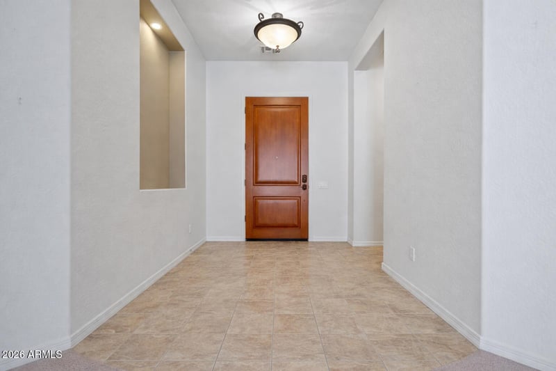 Designed with both comfort and entertaining in mind, the Alameda offers wonderful privacy, with the spacious primary suite thoughtfully separated from the guest bedrooms -- ideal for hosting family and friends with ease. This well-appointed three bedroom residence also includes an attached two-car garage plus a dedicated golf cart garage, perfect for embracing the community's active lifestyle. At the heart of the home, you'll find an expansive kitchen featuring a large island that opens seamlessly to the family room. Just beyond, the covered patio invites relaxed gatherings, complete with a built-in gas grill and tranquil fountain views -- a lovely setting for Arizona evenings. Washer and dryer are included for added convenience.