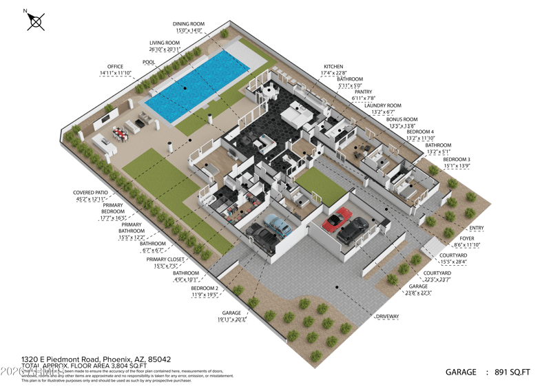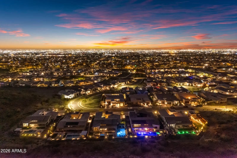 Listing details for 1320 Piedmont Rd, Phoenix, AZ 85042 : Welcome to your own slice of paradise nestled against the breathtaking backdrop of the South Mountain Preserve, where unmatched mountain views and dazzling city lights create one of the most captivating settings in all of Phoenix. This meticulously upgraded single-level luxury residence offers 3,804 square feet of refined living, built in 2021 and ideally positioned on a north-south facing 15,729 square foot corner lot with only one neighboring side, delivering both privacy and presence. From the moment you arrive, the home's modern curb appeal makes a lasting impression, featuring a paver driveway, upgraded iron front entry door, attractive landscape lighting, and a private enclosed front patio complete with artificial grass and low voltage lighting for a warm and inviting welcome. Inside, the home immediately showcases elevated design and intentional detail. Smooth wall texture, 8-foot interior doors, an eye-catching entry chandelier, and Philips Hue smart lighting throughout, create a sophisticated and customizable ambiance. Dark hexagon tile flooring flows through the main living areas, including the kitchen, living room, bonus area, and bathrooms, adding a bold and modern design element, while expansive windows fill the home with natural light. At the center of the home, the kitchen is nothing short of stunning. Calacatta Maywood quartz countertops pair beautifully with ceiling-height cabinetry, highlighted by windows that bring in natural light and elevate the entire space. A massive island with abundant seating anchors the room, complemented by stylish pendant lighting, a classic backsplash, and a full suite of built-in appliances including a Wolf gas cooktop, dual wall ovens, microwave, built-in refrigerator, and wine fridge. A deep walk-in pantry completes this highly functional and visually striking space. The open concept living area is designed to fully embrace Arizona living, featuring a dramatic glass corner with multi-panel pocket sliding doors that completely open to the exterior, creating a seamless indoor-outdoor experience unlike anything else. The formal dining area is perfectly positioned to capture views of the pool and mountains beyond, making every gathering feel elevated. The split floor plan offers both privacy and flexibility, with an additional living space currently styled as a den that can easily function as a game room, along with a bonus room on the guest side ideal for a media room or teen retreat. The primary suite is a private sanctuary, featuring a custom herringbone accent wall, a fully built-out custom closet system, and direct views of the backyard oasis. The spa-inspired primary bath is finished with a frameless glass walk-in shower with tile-to-ceiling surrounds, rain shower head, floating vanities, and upgraded matte black fixtures, delivering a clean, modern, and luxurious experience. Step outside to a true resort-caliber backyard where the views and design come together to create an unforgettable setting. The custom pool is a showpiece, featuring LED lighting, sheer descent water features, bubbler lighting, in-floor cleaning, and a Pentair heating and cooling system, enhanced by advanced ozone, UV, and cyclone water treatment components. The outdoor living space is built for entertaining, complete with an extended covered patio, a stunning pergola with integrated lighting, a gas fireplace, a built-in BBQ island with gas stub, designer concrete slab decking, and professionally designed landscaping with artificial turf. Double RV gates add both convenience and flexibility. Additional high-end features include motorized exterior sun shades across the rear glass wall, an insulated 4-car garage with epoxy floors, EV charging capability with a 240V outlet, and a spacious laundry room with extensive cabinetry, folding counter, and sink. Located at the base of the South Mountain Preserve, this home offers immediate access to miles of hiking and biking trails, iconic desert scenery, and some of the most sought-after outdoor recreation in the Valley. Enjoy quick access to Downtown Phoenix, Sky Harbor Airport, premier golf courses, and a growing collection of dining and entertainment options, all while coming home to a private, view-rich setting that feels worlds away from the city. This is a rare opportunity to experience the best of convenience, nature, and elevated Arizona living in one exceptional location.