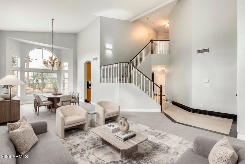Listing details for 13210 13th St, Phoenix, AZ 85022 : Elevated Desert Living with Mountain Views! Situated on a premium corner lot, this home captures stunning mountain views & offers an impressive layout for everyday living & entertaining. The expansive formal living & dining room showcases vaulted ceilings, abundant natural light & a striking staircase that makes a true architectural statement. The kitchen features a large center island, sleek cabinetry, ample prep space & an eat-in nook surrounded by windows, all opening seamlessly to the family room with a statement fireplace. A downstairs bedroom includes a connected ensuite with walk-in shower & double vanity. Upstairs, the oversized primary retreat with a dual-sided fireplace, private balcony with views that opens directly from the primary bedroom, multiple walk-in closets with built-in organization & a luxurious ensuite complete with soaking tub, oversized glass walk-in shower, dual vanities, extensive cabinetry & countertop space, plus private sitting area or possible 5th bedroom. Secondary bedrooms are generously sized & the additional upstairs bath features a double vanity. The backyard is designed for entertaining with resort-like views, a built-in BBQ & bar seating, covered patio, sparkling pool & spa, lush landscaping & open mountain views. Golf course surroundings, scenic walking paths & nearby mountain trails, all just minutes from shopping & dining, with convenient access to Route 51, I-17 & Loop 101 plus close proximity to downtown Phoenix & the airport.