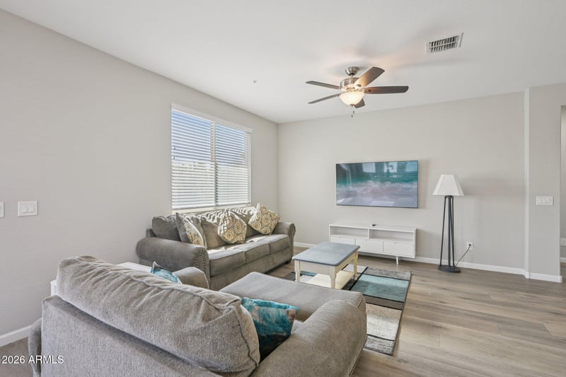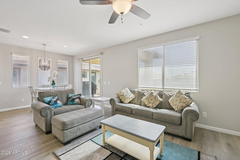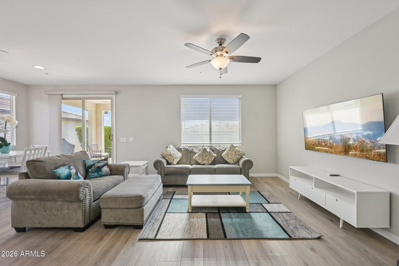 Listing details for 13293 Palo Brea Ln, Peoria, AZ 85383 : **LOVELY lightly lived in home**PAID SOLAR*Average APS bills at $22.76 a month**GORGEOUS 2-bedroom/2-bath home features luxury vinyl plank flooring, Open Concept Kitchen, Dining & Great Room, 9-ft ceilings, with UPGRADED lighting and plumbing fixtures throughout. Spacious master retreat with walk-in closet, tiled walk-in shower, and dual sinks. The kitchen boasts GE Profile stainless steel appliances with GAS RANGE, Blanco sink, pendant lighting, staggered shaker cabinets, beautiful quartz countertops, soft-close cabinet doors, and ADDITIONAL STORAGE in the pantry! SPLIT FLOOR PLAN offers privacy to overnight guests with a separate guest room area with an adjacent bath. You'll also find MORE STORAGE in the laundry room with custom cabinets***Garage is temperature controlled with a mini-split***The laundry room is also pre-plumbed for a sink! The 2-car garage includes custom built-in storage cabinets. The LOW MAINTENANCE, LARGE backyard is perfect for entertaining family/friends with an elevated lot that provides a bit more privacy...with extended patio and pavers. There's also a GAS STUB. Walking distance to the ACTIVITIES AND AMENITIES that await at the MITA CLUB. This home is nestled in the award-winning 55+ community of Trilogy at Vistancia, offering residents golf, tennis, clubhouse/rec-center, dining, walking/biking trails, and so much more. Come live the life you've dreamed of!