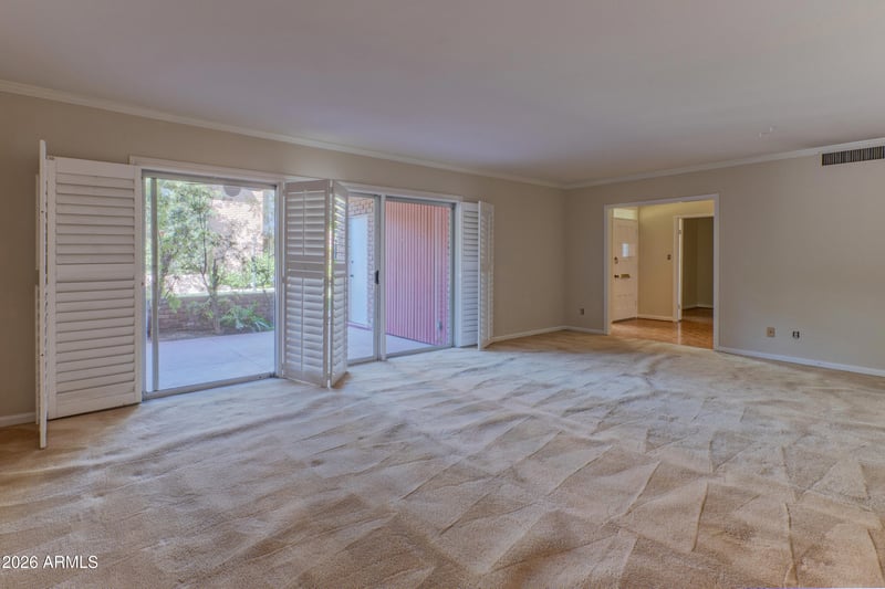 Listing details for 133 Palm Ln #A, Phoenix, AZ 85004 : Located in the historic Chateau de Ville community near Downtown Phoenix, this distinctive residence is part of a mid-century development designed by architect Ronald W. (Walsh) Craik and built by the respected firm Staman & Fields in the early 1960s. When it debuted in 1964, Chateau de Ville was promoted as ''the most gorgeous condominium'' and ''luxury living at its best,'' quickly earning a reputation as ''a most excellent address.'' Today, that legacy lives on in this spacious 3-bedroom, 2-bath residence offering nearly 1,950 square feet of classic mid-century design. Inside, you'll find parquet wood floors, crown molding, built-ins, and expansive living and dining spaces that create a warm and inviting vibe perfect for entertaining or relaxed everyday living. The galley kitchen with breakfast nook and generous walk-in pantry blends charm and functionality, while wall-to-wall Arcadia doors open to covered patios and courtyard views, bringing the outdoors in. The primary suite features a large walk-in closet and an ensuite bath with double vanity and walk-in shower, while additional bedrooms offer flexibility for guests, a home office, or creative space. Set in Phoenix's vibrant Arts District, the location places you minutes from Phoenix Art Museum, the Heard Museum, Burton Barr Central Library, and The Phoenix Theatre Company, along with downtown restaurants, galleries, and cultural venues. With a Walk Score of 78 and Bike Score of 66, plus easy walking access to the light rail, the neighborhood makes it simple to explore the best of Central Phoenix without ever getting in the car. Blending mid-century architecture, generous living space, and one of Central Phoenix's most culturally rich locations, this home offers a rare opportunity to experience a true architectural gem in the heart of the city.