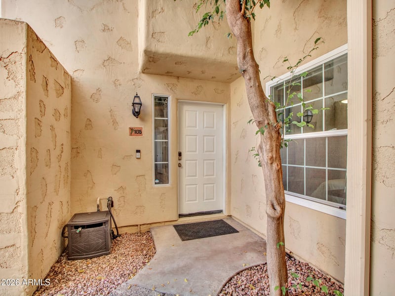 Listing details for 1333 Morten Ave #105, Phoenix, AZ 85020 : This modern, move-in-ready 2 bed, 2 bath condo offers the perfect blend of comfort and convenience in a prime central Phoenix location. The open layout, warm interiors, and attached patio create a space that feels both functional and inviting, while the kitchen features granite counters and stainless steel appliances. Thoughtfully updated with new vinyl flooring (2023), remodeled bath (2018), updated lighting and ceiling fans, Legrand switches and outlets, and smart features including thermostat, keyless entry, ring doorbell, and security cameras (2023). Includes new washer and dryer (2023), Insinkerator (2025). Located in a quiet community with a pool and heated spa, plus covered parking, this is an ideal low-maintenance home in a family friendly neighborhood.