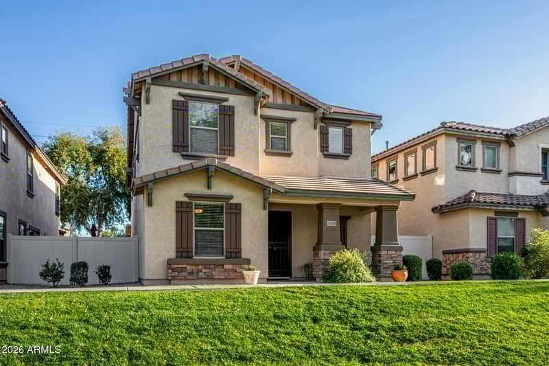 Listing details for 1334 Salem --, Mesa, AZ 85206 : This East Mesa home offers a versatile layout with 4 bedrooms, 2.5 baths, and a loft, providing flexible space for everyday living, work, or play. Interior finishes include 24'' x 24'' tile, engineered wood flooring, accent paint, and 2'' blinds, creating a clean, move-in ready feel. The kitchen features a breakfast bar, pantry, raised-panel cherry cabinets, and black appliances, with a convenient upstairs laundry room nearby. The owner's suite includes a bathroom with a walk-in shower and separate soaking tub, while large secondary bedrooms offer comfortable space for family or guests. Enjoy outdoor living in the paver-finished backyard, plus added storage and parking with a 2-car garage. The home is located in a desirable East Mesa community with a pool, close to shopping, dining, and everyday conveniences. If you're searching for a 4-bedroom home with a loft in East Mesa, community amenities, and a functional floor plan, this property checks all the boxes. Walking distance to the community pool