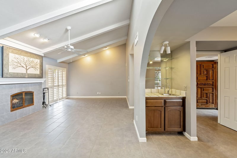 Listing details for 1341 Gardenia Dr, Phoenix, AZ 85020 : The time to be happy is now--and the place to be happy is HERE. Tucked away on a quiet cul-de-sac and set within an intimate enclave of just 40 homes, this 2 bedroom, 2 bathroom plus den home has a light-filled interior featuring vaulted ceilings, clerestory windows, and timeless gray slate tile flooring. The living space is anchored by a cozy wood-burning fireplace, wet bar, ceiling fans and classic wooden shutters throughout. The spacious primary suite offers two walk-in closets, dual vanities, and a convenient door leading to a low maintenance backyard. The versatile second bedroom includes a built-in queen-size Murphy bed--perfect for guests. Two car garage with storage area. Community highlights include lush, irrigated grounds with mature trees, a garden, sparkling pool, and three ponds filled with koi fish--all surrounded by a neighborhood of million-dollar properties. You can walk to Luci's at the Orchard, easy access to SR-51, walks on the canal, hiking, Madison schools.
