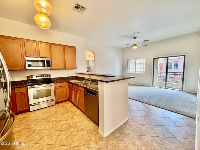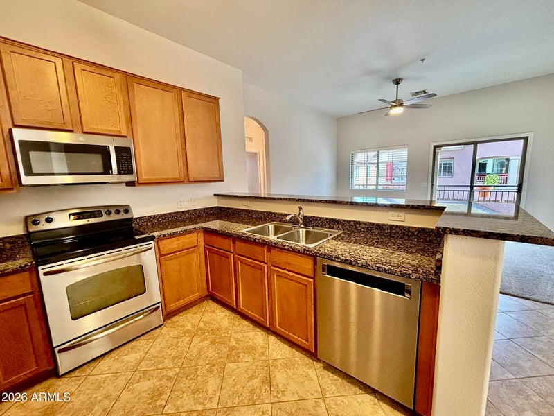Listing details for 1350 Greenfield Rd #2041, Mesa, AZ 85206 : RECENTLY UPDATED Condo in a Gated Community w/ Private Garage, Balcony, and Resort Style Pool *** MOVE-IN-READY *** New Paint, New Premium Carpet w/ Upgraded Pad, New Blinds, Stainless Steel Appliances, Granite Counters, and Tile in all the right places. Great Layout, HIGH CEILINGS, Large Pantry, Fridge, Washer & Dry Included!