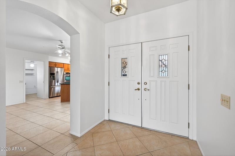 Listing details for 13540 Pavillion Dr, Sun City West, AZ 85375 : This EXPANDED Barcelona with a private CASITA and oversized enclosed front courtyard sits on a 13,500sf POOL-SIZED LOT and offers exceptional versatility with multiple unique living spaces. PRIME LOCATION on a corner lot in a quiet cul-de-sac, the home features strong curb appeal and a roof underlayment replaced in 2018. A gated entrance leads to the expansive front courtyard, creating generous outdoor living space that separates the casita from the main residence. The spacious 394sf CASITA includes a full bath, walk-in closet, abundant cabinetry, sitting area, and a newer mini-split system installed within the past three years. Double doors welcome you into the main home (1772sf), where the bright kitchen offers Corian countertops, SS appliances, extensive cabinetry, an eat-in breakfast area, gas cook top, wall oven, built-in desk/workspace, and direct access to the courtyard. Hard surface flooring runs throughout no carpet. An extended space off the dining room serves as an ideal hobby or flex area with elegant French doors opening to the backyard. Tall ceilings and abundant windows fill the living room with natural light, creating an open, airy feel.