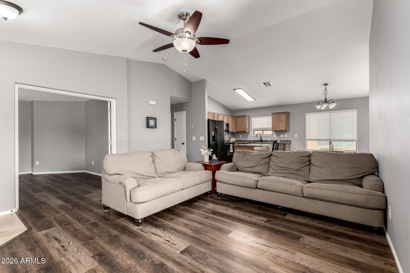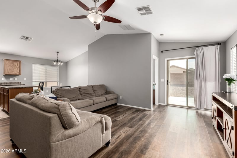 Listing details for 1377 Pryor Rd, San Tan Valley, AZ 85140 : This well-maintained 3-bedroom, 2-bath home offers a functional split floor plan with a spacious great room designed for comfortable everyday living. A versatile den provides additional space for work, hobbies, or guests. Updated flooring and fresh interior paint give the home a clean, move-in-ready feel. Low-maintenance landscaping allows for easy outdoor upkeep, and the 2-car garage adds convenient storage and parking. A thoughtfully designed home offering flexibility, comfort, and practical features throughout.