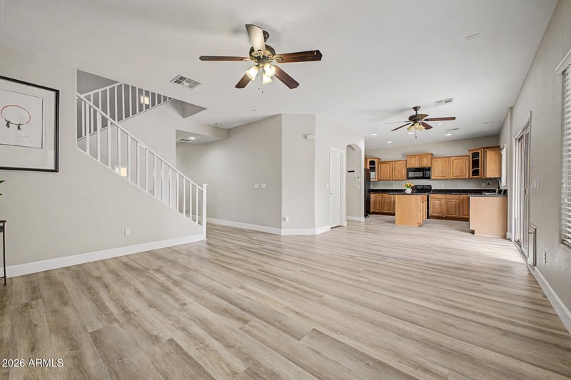 Listing details for 1379 Joseph Way, Gilbert, AZ 85295 : Prime Gilbert location, backing to greenbelt! Close to shopping, dining, entertainment, hospital, and the Loop 202, this 4-bedroom home has an open floor plan, neutral tones throughout, and one full bedroom and bathroom conveniently located downstairs. Low-maintenance backyard offers lovely greenbelt views! Home is located adjacent to community park, pool, and playground, and is two blocks from the school. AC replaced in 2022, water heater, washer/dryer (included) in 2025. New carpet in bedrooms to be installed 4/21. Spectrum is an active community hosts events and activities for all ages, such as food trucks, book club, and movies in the park...something for everyone! HOA fees also cover front yard landscaping, roof repair/replacement, and exterior maintenance of home.