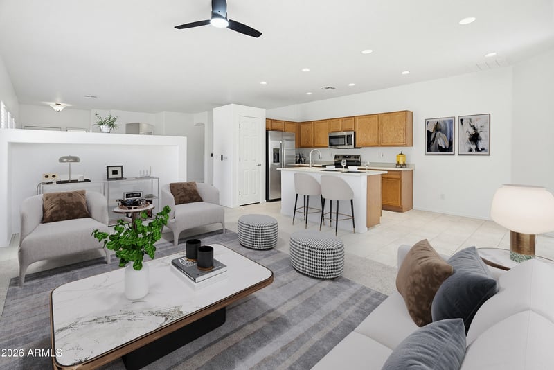 Listing details for 13857 Maui Ln, Surprise, AZ 85379 : Get ready--this one is expected to move FAST! This fully updated 4-bedroom, 2-bath home is truly turn-key with fresh interior paint, new carpet, and ALL NEW appliances including refrigerator, stove, microwave, dishwasher, and washer/dryer. Open floor plan offers both living and family rooms which open to the kitchen--perfect for everyday living and entertaining. Split primary suite features dual vanities and walk-in closet. The additional bedrooms offer flexible space for an office. Step outside to a resort-style backyard with sparkling pool, waterfall and grotto, outdoor fireplace, and built-in BBQ--an entertainer's dream. Minutes to Village at Prasada, shopping, dining, and freeway access. Opportunities like this don't sit!