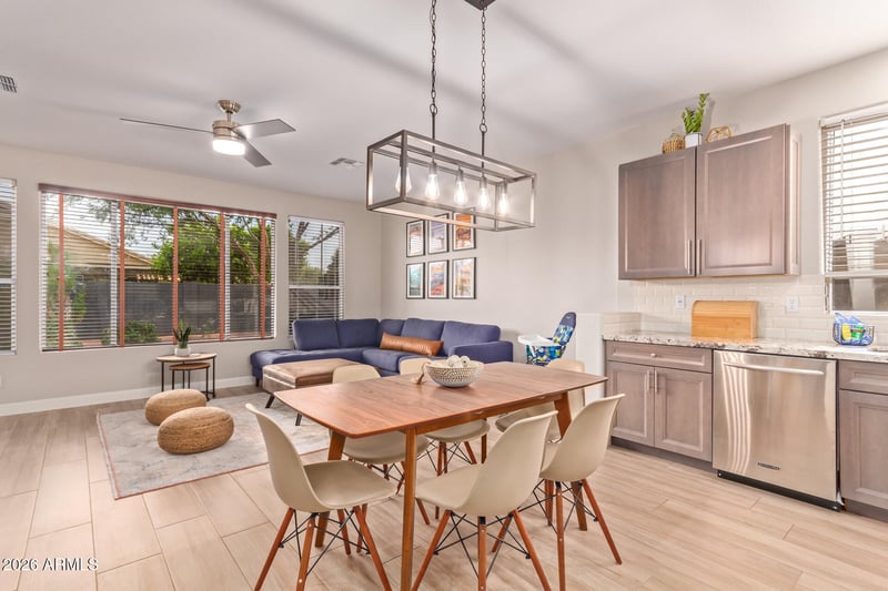 Designed for indoor-outdoor living, the resort-style backyard features a heated pool with water feature, brand new pebble tec, covered patio, and mature citrus tree, making it the perfect space to relax or host. Situated on a north/south-facing corner lot, this home also boasts an unbeatable location -- just about 2 miles from the restaurants, shopping, and entertainment of Downtown Gilbert, with quick access to the Loop 202 and US-60 freeways. A rare opportunity to own a stylish, turnkey home in a truly prime Gilbert location.