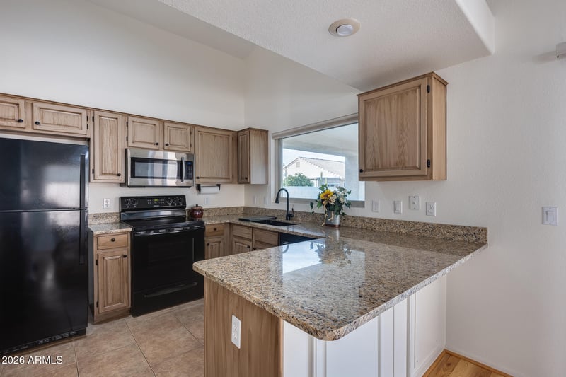 Listing details for 13942 Santee Way, Surprise, AZ 85374 : Great FURNISHED Artesia Plan in the Pueblo neighborhood of Gated Sun Village Resort - MANY UPGRADES HERE - Roof Underlayment recent, HVAC 2019, Windows and Slider, Tile and laminate flooring, Nicely stained cabinets and Granite countertops, master shower remodeled and fixtures and toilet too! Covered patio has nice cool decking and faux Stone accents. HOA maintains front yard here. Don't Miss this one! Sun Village is a 55+ Gated, Resort Style Community. Enjoy the 18 hole par 3 golf course, gigantic heated pool & spa, pickleball, tennis, fitness gym, woodshop, billiards, onsite entertainment in our ball room and onsite restaurant!Sun Village, is a gated, security guarded, age 55+, community, in the city of Surprise, Arizona. This small community is made up of just under 1400 homes and condominiums. The Sun Village Community has an 18 hole, par three "no-"riding" golf course, an heated swimming pool and spa, tennis, pickle ball and shuffleboard courts, horseshoe pits, an exercise room, a billiards room, sewing and crafts rooms, and a ballroom where national and international entertainment can be enjoyed!