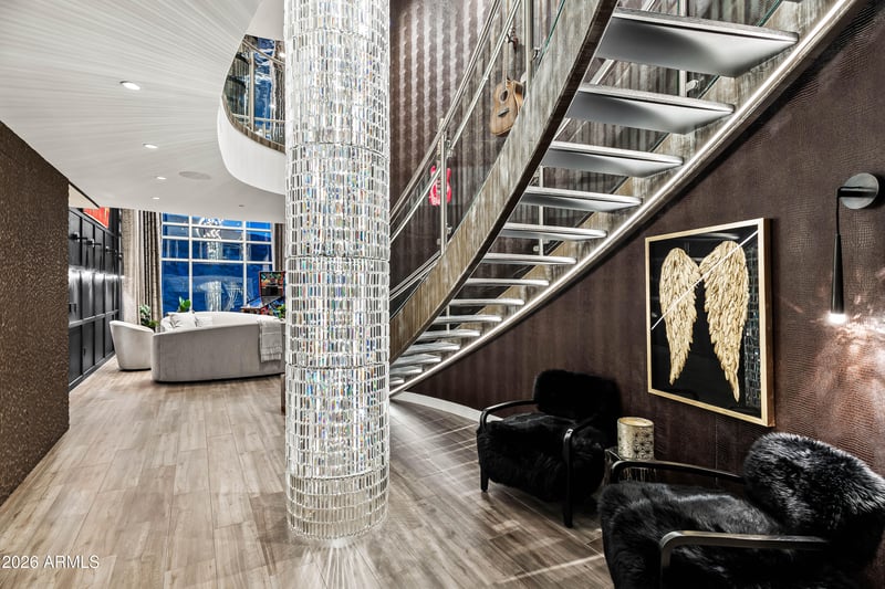 Listing details for 140 Rio Salado Pw #1201, Tempe, AZ 85281 : Welcome to one of the most exclusive penthouse opportunities in the Valley. Perched atop Bridgeview at Hayden Ferry Lakeside, this rare 12th-floor residence offers 4 bedrooms, 4.5 bathrooms, & 3,783 SF of fully renovated, two-story living. Positioned at one of the highest vantage points on Tempe Town Lake, it captures panoramic views of Hayden Butte (A Mountain), Camelback Mountain, the Papago Mountains, the lake, ASU, & the city skyline--stretching from sunrise to city lights. A dramatic arrival is defined by 18-foot ceilings, a two-story wall of glass, & a sculptural spiral staircase. The open layout flows through the great room, dining, & a chef's kitchen with Wolf, Miele, & Sub-Zero appliances. Floor-to-ceiling glass opens to two private terraces for seamless indoor-outdoor living.