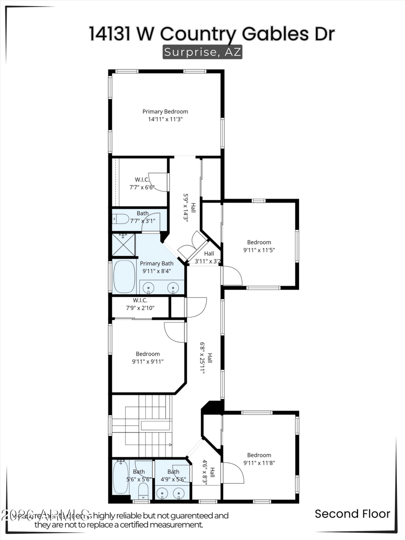Listing details for 14131 Country Gables Dr, Surprise, AZ 85379 : Located in the city of Surprise, this two-story home offers over 1,900 sq ft with a functional layout designed for everyday living. The main level features multiple living areas with an open connection to the kitchen for easy flow. Upstairs, all four bedrooms are thoughtfully positioned, including a spacious primary suite with dual sinks, separate shower and tub, and generous closet space. Situated on a low-maintenance lot with close neighboring homes, this property is ideal for easy upkeep. Enjoy access to a community pool and nearby amenities. A smart option in today's market