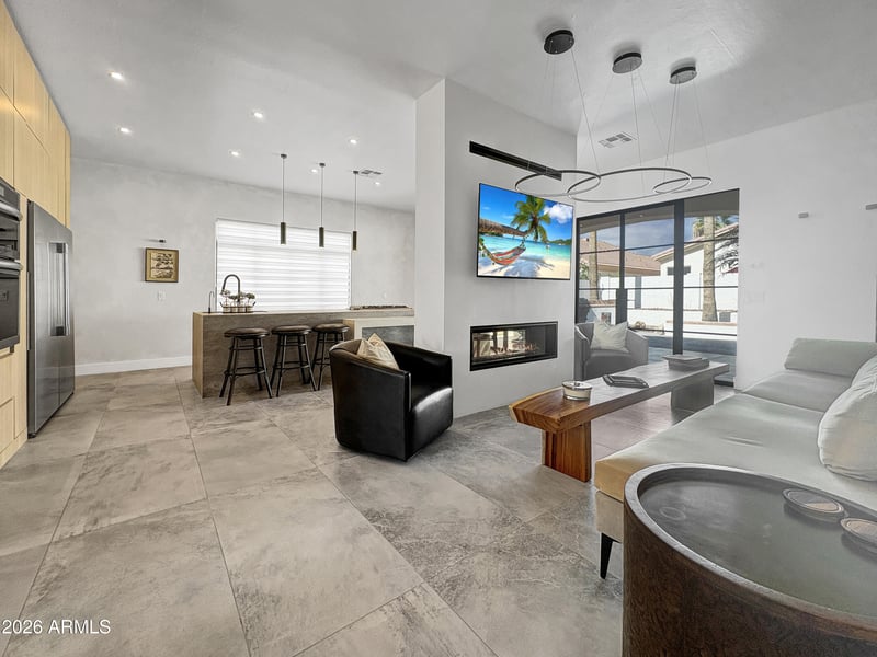 This residence is located inside the guard-gated community of Litchfield Greens, one of the more established neighborhoods in the West Valley and just minutes from The Wigwam Resort and golf course. Inside, Spanish porcelain flooring anchors open living spaces filled with natural light. The kitchen centers around a custom island and Butler's Pantry for added storage and prep. Bathrooms feature walk-in marble showers with built-in seating. Imported iron doors open to a covered patio with a gas fireplace, rock fountain, and spa. In March 2025, the home received a full roof replacement, including new tile, 40-ply rubber-modified underlayment, upgraded components, and a 10-year material and labor warranty.