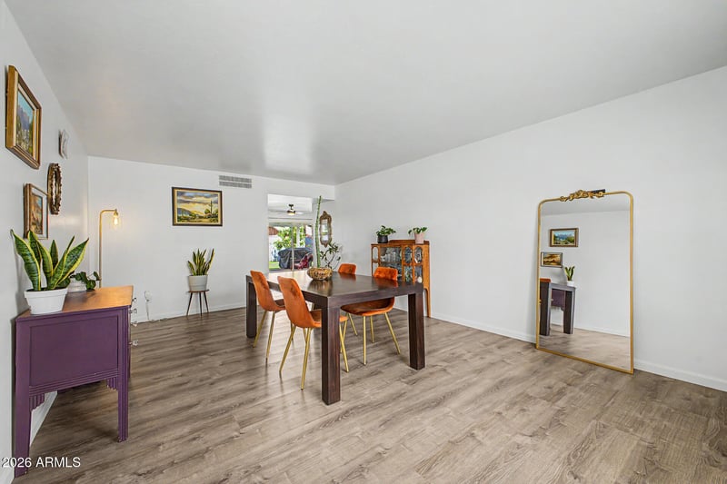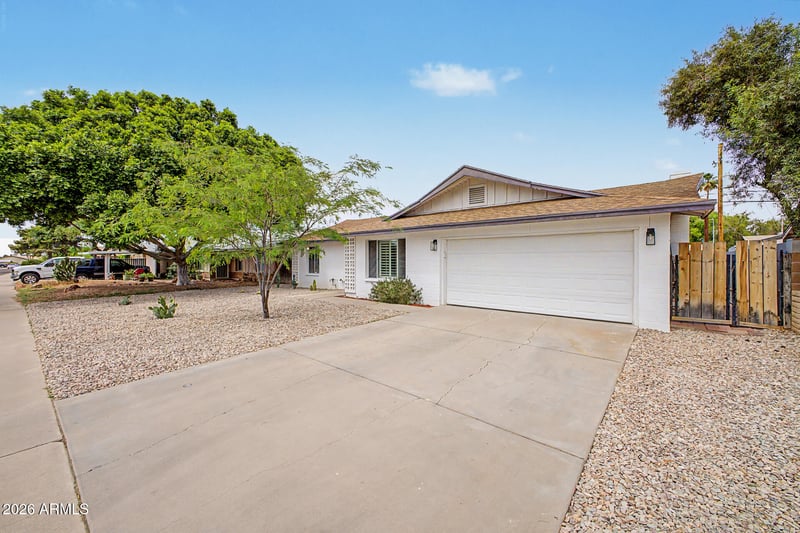 Listing details for 1420 Campus Dr, Tempe, AZ 85282 : Mid-century brick charmer with a bright interior, neutral finishes, and a functional floor plan that reflects pride of ownership. Featuring 3 spacious bedrooms and 2 bathrooms, plus both a living room and large family room ideal for entertaining. The updated primary suite and guest bath add modern comfort. Major upgrades include a newer sewer line (2023), electrical panel (2023), and irrigation system (2025). The backyard offers a large covered patio, grassy area, RV gate, and mature citrus trees. Still room to transform and make it your own with an excellent canvas. Centrally located near parks, dining, and convenient freeway access. Talk about a GREAT Value!