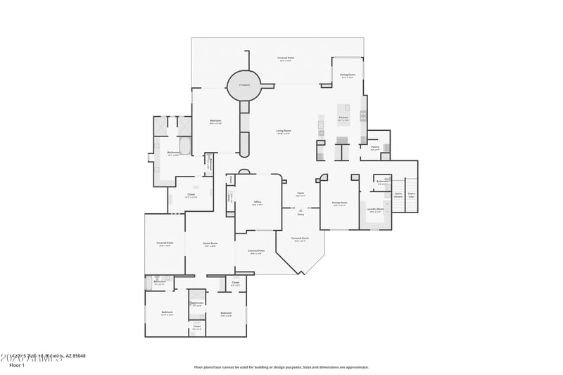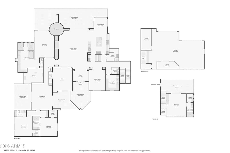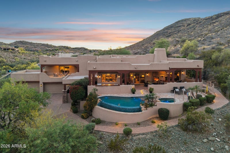 Listing details for 14201 20th St, Phoenix, AZ 85048 : Gorgeous luxury estate in the mountains of Tapestry Canyon. Boasts panoramic views of desert preserve, Four Peaks, Red Mountain, and city lights. Exceptional great room layout with privacy and seclusion. Five different covered patios offer ample places to relax, sit by one of four fireplaces, and enjoy this lavish retreat. Open, gourmet kitchen has it all with elegant concrete countertops, oversized pantry, Butler's pantry, Subzero, Dacor, Wolf and Bosch appliances. Primary living quarters offers dual showers, large steam shower with mood lighting and infrared ceiling lamp at exit. Travertine custom floors. Electric Privacy blinds t/o. Updated surround speakers t/o. Extended four car garage with copious storage space. This is a gem with a one-of-a-kind lot that must be seen to be believe