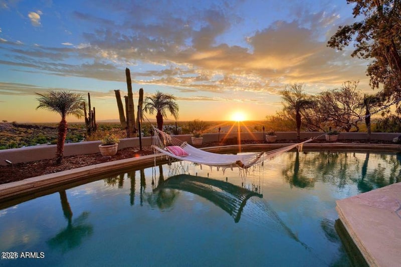 Listing details for 14624 15th Dr, Phoenix, AZ 85023 : Perched high in the guard-gated Coral Gables Estates, this stunning Santa Barbara-style hillside home delivers unforgettable panoramic Valley views, glowing sunsets, and twinkling city lights. Tucked along a winding drive, the home welcomes you with a charming paver courtyard and grand double iron doors that open to a striking rotunda foyer with soaring ceilings. Thoughtfully updated with elegant finishes and soft architectural curves, the downstairs features 3 bedrooms, 4 bathrooms, and a versatile flex room designed as an entertainer's dream--complete with surround sound, shiplap walls, and a bar area with fridge and sink, perfect for movie nights. Upstairs, escape to a stunning primary suite along with an additional flex space ideal for a home office, all complemented by an expansive balcony showcasing breathtaking views. Designed for both relaxation and entertaining, enjoy two expansive wraparound covered patios with gas fireplaces overlooking a sparkling pebble-tec pool, spa, BBQ area, and tranquil water feature. Experience elevated Arizona living at its finest. Just minutes from the Moon Valley Country club to enjoy golf, pickleball, tennis and fitness!