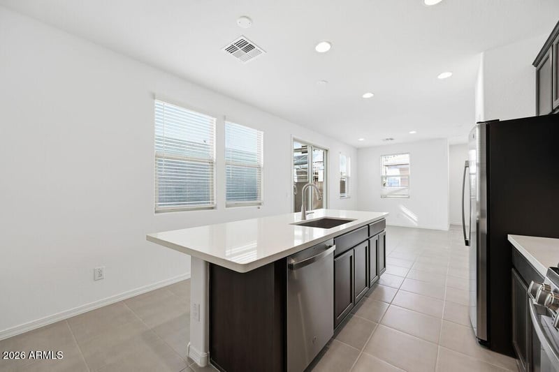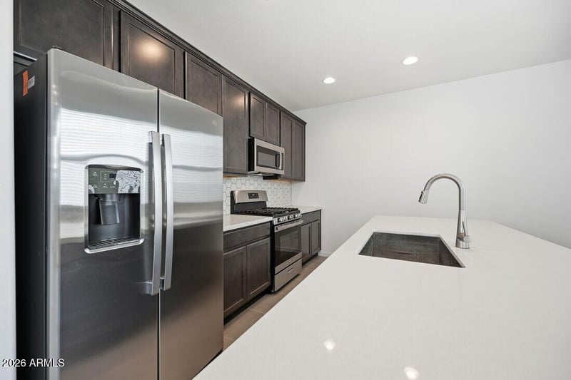 Listing details for 14658 Soft Wind Dr, Surprise, AZ 85387 : What's Special: East Facing Lot | North Facing Patio | 2nd Floor Laundry Room | Large Kitchen Island | Model Plan. New Construction - Ready Now! Built by America's Most Trusted Homebuilder. This home comes with a MOVE-IN PACKAGE which includes: Appliance Package (refrigerator/washer/dryer), 6 Months of HOA dues ($1146) and 2'' faux wood blinds! Welcome to the Plan CC-RM2 at 14658 W Soft Wind Drive in Avila at Rancho Mercado! This two-story home offers 1,639 sq. ft. with 3 bedrooms, 2.5 baths, and a 2-car garage. Enjoy a wraparound porch, open kitchen and great room, plus an upstairs laundry. The primary suite features a marble super shower, dual sinks, and walk-in closet. Additional Highlights include: granite countertops, EV charger in garage and upgraded flooring. MLS# 6959766