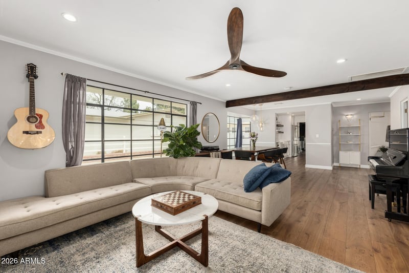 Listing details for 149 Miller St, Mesa, AZ 85204 : Refurbished, Updated, & Upgraded to PERFECTION! This vintage home is the definition of mid-century modern where 1950's charm and character meet 21st century convenience. 3 Bedroom/2 Bathroom, 2,019sqft block construction home on 11,233sqft lushly landscaped lot is open and bright with warm, wood floors contrasted with smooth finish white ceilings and recessed lighting. The spacious kitchen features custom maple cabinetry, natural wood shelves, quartz counters, tile backsplash, farmhouse sink, 42'' Imported Italian Gas Range and double ovens. Windows in the front of your new home were restored and upgraded with dual pane glass and the windows in back were replaced with triple pane windows. The primary suite is a retreat and features a fireplace, 2 person jacuzzi tub, and steam shower with multi head shower system! THERE'S MORE - attached two car garage with storage, inside laundry, separate office/hobby building, climate-controlled playhouse, covered brick-paved patio, hardwood shiplap and exposed brick and block accent walls, New electrical and plumbing systems, and the list goes on. You Will Love This Home! Please see complete list of upgrades in the document section.