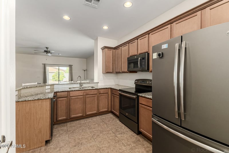 Listing details for 1490 Birch Rd, Queen Creek, AZ 85140 : Fresh, open, bright, and truly move-in ready, this 3 bedroom, 2 bath home offers 1,512 sq. ft. with a desirable split floor plan and north/south exposure. Fresh interior paint, no pets, and no carpet make this home feel exceptionally clean and well cared for. The kitchen features granite counters, breakfast bar seating, stainless steel appliances, a dual energy range, and a spacious breakfast room with charming wood framed and capped windows. The roomy owner's suite includes dual sinks, a water closet, and a walk-in closet, while the two guest bedrooms offer great space and flexibility. Outside, enjoy the beautifully remodeled backyard with a covered patio, extended pavers, synthetic grass, mature fruit trees, and a private pool-size lot with no 2-stories behind.All of this in a vibrant Queen Creek community loaded with amenities 20 parks, 2 heated pools, splash pad, sports courts, frisbee golf, bocce ball, and more. Close to The Olive Mill, Schnepf Farms, Pioneer Park, and endless dining and shopping.