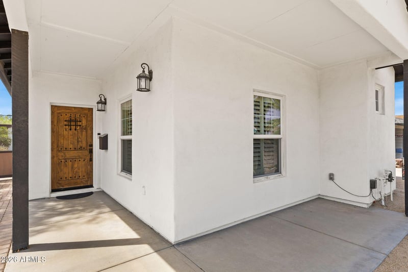 Step outside and the tranquility continues. A covered front patio welcomes you home, while the backyard offers a pergola-covered patio, beautiful paver hardscape, turf, and lush desert plantings -- all illuminated by landscape lighting on an automatic timer that brings the space to life every evening. A new back alley gate and extended paver driveway complete the exterior. Peaceful, private, and low maintenance.