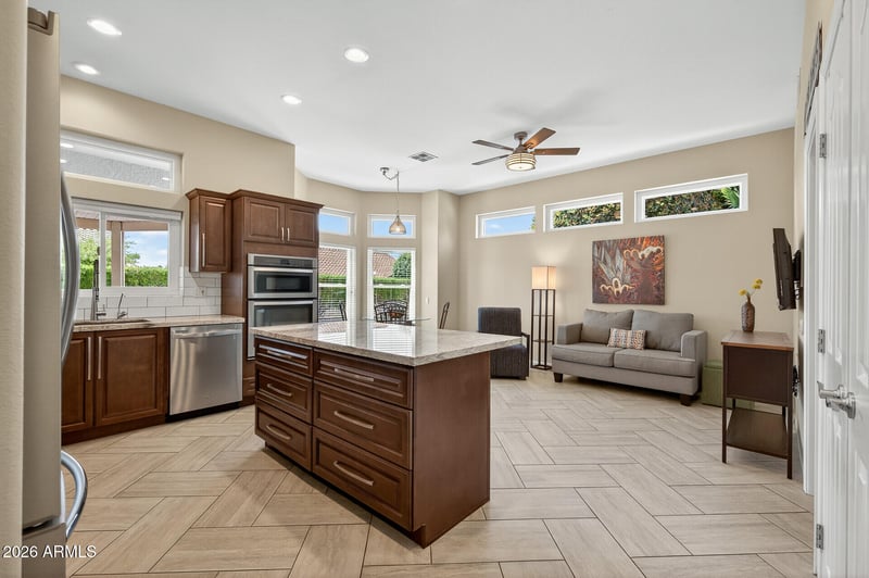 Listing details for 15137 Black Gold Ln, Sun City West, AZ 85375 : Beautifully remodeled & modified ''3 bed'' Ventana Plan on a very large-private-fenced back-of-the-cul de-sac-lot. This Entertainer's Dream offers fabulous indoor & outdoor living with a huge covered patio, built in BBQ, enormous yard (with room for your pool AND resort-style putting green!) Inside enjoy modern-neutral tile throughout, a stunning updated kitchen (w/ newer cabinets, stainless appliances, gas cooktop, granite counters, & pull outs too!) PLUS an office, indoor laundry & separate craft room that could easily serve as guest sleep space. All baths (2.5) have been redone & the Guest Bathroom is also Ensuite! HVAC 2024-Soft Water 2023-Exterior paint 2021-Water Heater 2020-Pavers 2020 & Pella windows 2018 (plus MORE) --Combine for easy living! Available FURNISHED if desired.