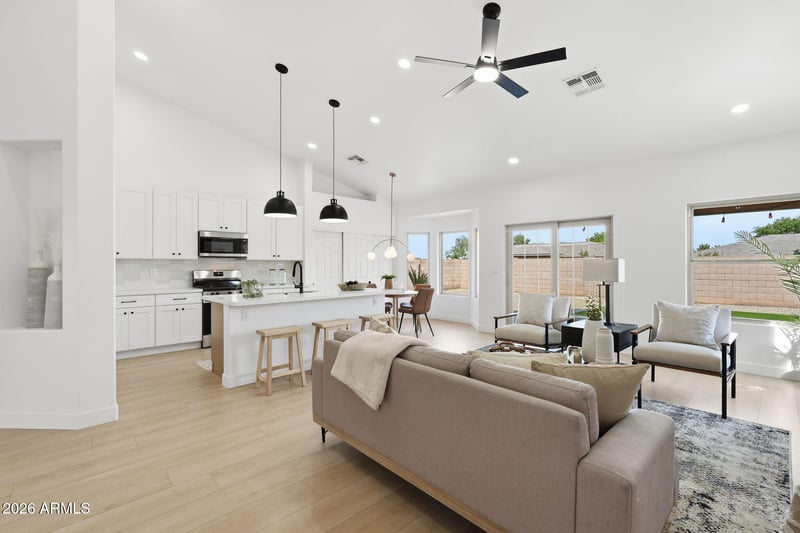 Listing details for 15221 47th Way, Phoenix, AZ 85044 : STUNNING REMODEL ALERT!! DESIGNER GRADE! LUXURY FINISHES! WOW! CLEAN neighborhood + NO HOA! 3 bedrooms, 2 bathrooms and ALL the luxury finishes at a price point you can afford! No detail missed on this one. NEW interior + exterior modern paint package, all new designer 2 tone white oak kitchen with soft close cabinetry, brand new luxury vinyl plank flooring, new tall baseboards, all new fans, faucets, fixtures + so much more. This is the one! A true entertainer's house. WOW! Always priced to sell, show today before it's gone. HVAC, Roof, Windows, Water Heater all updated!