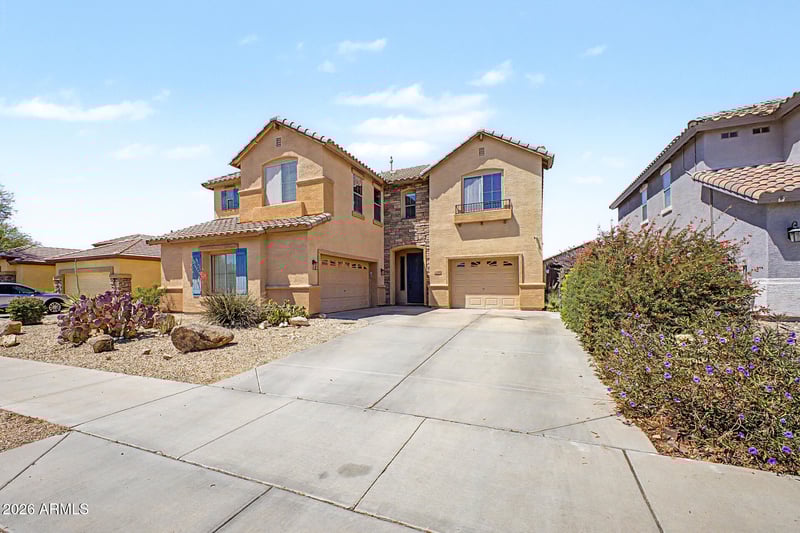 Listing details for 15278 Morning Glory St, Goodyear, AZ 85338 : Remarkable, spacious two-story home with POOL in Centerra! Offering 5 beds, 3 baths, split 3-car garage, & a desert landscape. Discover a large formal living & dining room with a soaring ceiling! Natural light filled the interior, complemented by a neutral palette and tile & soft carpet t/out. The welcoming family room opens to the impressive, allowing a greater traffic flow! SS appliances, granite counters, ample wood cabinetry, a pantry, recessed lighting, a breakfast area, and a center island make up the culinary space. One bedroom, one bathroom, and a cozy den complete the downstairs. The oversized main bedroom has an ensuite with dual sinks, separate tub/shower, & a walk-in closet. Enjoy the backyard oasis with a full-length covered patio & sparkling pool for year-round fun! Just WOW!