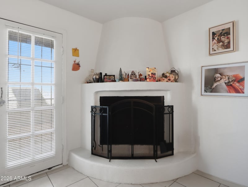 Listing details for 15402 28th St #128, Phoenix, AZ 85032 : Cozy up to a beautiful fireplace in this bright, inviting condo. The open living area flows to French doors leading to a charming courtyard. Enjoy spacious bedrooms, a private patio, and a light, airy feel throughout. The kitchen offers ample cabinets, a built-in microwave, stackable washer/dryer hookups, and neutral tile flooring. Conveniently located near the 101 and 51, this first-floor unit includes nearby parking. The community features a lovely, spacious pool area. Charming, functional, and move-in ready!