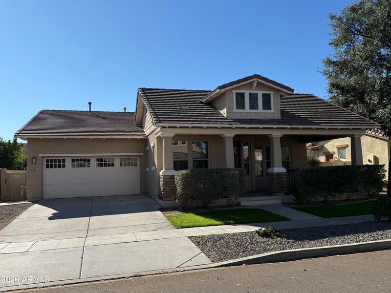Listing details for 15413 Alexandria Way, Surprise, AZ 85379 : TRULY A MUST SEE, TURNKEY! 4-bedrooms,3 full bath single level in Marley Park! 2-car garage with storage, manicured landscape & cozy front porch. Interior features natural light, designer paint, & wood-look tile flooring w/new carpet in bedrooms. Home offers formal Living & dining room. Large great room that opens to the kitchen & views of backyard! SS appliances, Gas range, granite counters, walk-in pantry, tile backsplash, breakfast bar & staggered cabinetry w/crown molding make up the culinary space. Primary bedroom has outdoor access and an ensuite with 2 vanities, separate tub/walk-in shower & large walk-in closet. Large laundry room w/sink & cabinetry. Side patio off Dining room! Entertainer's backyard with covered patio, pavers, firepit, hot tub, Pebble-tec play pool & owned sola