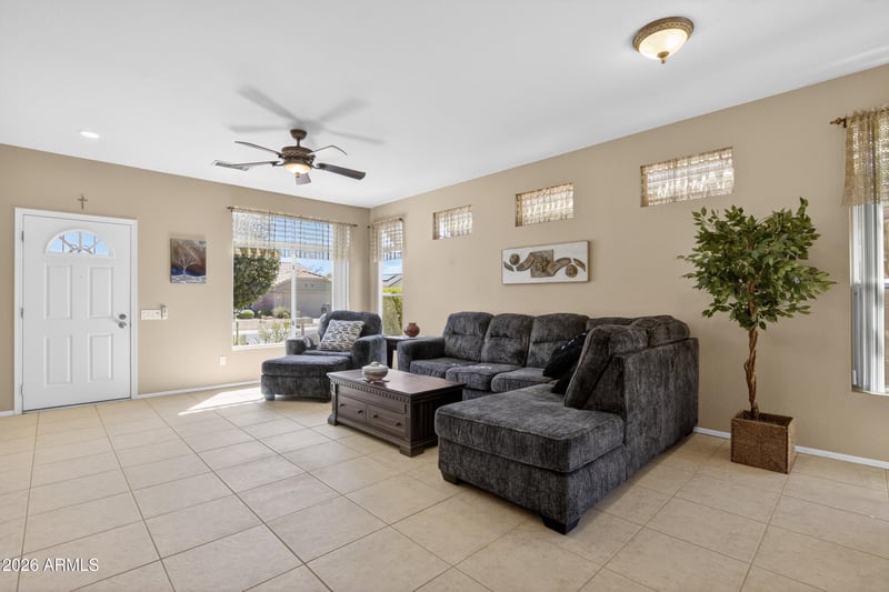 Listing details for 15418 Arzon Way, Sun City West, AZ 85375 : Welcome to easy, low-maintenance living in the active adult community of Sun City West. This charming 2 bed, 2 bath home offers approx. 1300 sqft of living space, thoughtfully designed for everyday convenience and relaxed living. Beyond the home itself, this premier 55+ community is known for its unmatched lifestyle, with 4 recreation centers, multiple pools, fitness facilities, and over 90+ clubs and activities. Residents also enjoy golf, pickleball and tennis, walking trails, arts & crafts, a private library, bowling and social events year round. This is an incredible lock and leave home or for year round enjoyment!
