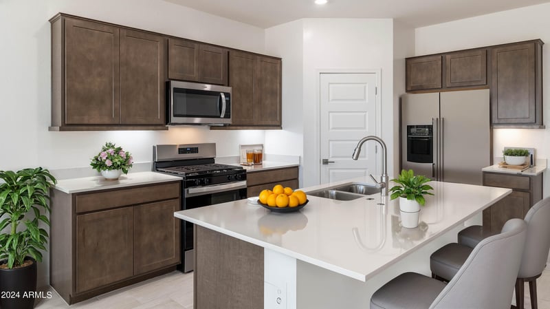 Listing details for 15470 Desert Hollow Dr, Surprise, AZ 85387 : New Build now ready for June move in. SMART HOME TECHNOLOGY! - a huge kitchen island to show off - Stainless Steel appliances - Gas range - microwave - blinds on all windows - garage door opener - all rooms pre-wired for lights ceiling fans - Birch Cabinets - Pest Control tubes - Garage Coach lights - 9' high ceilings - upgraded bathroom and kitchen hardware - front landscape timer/drip system.