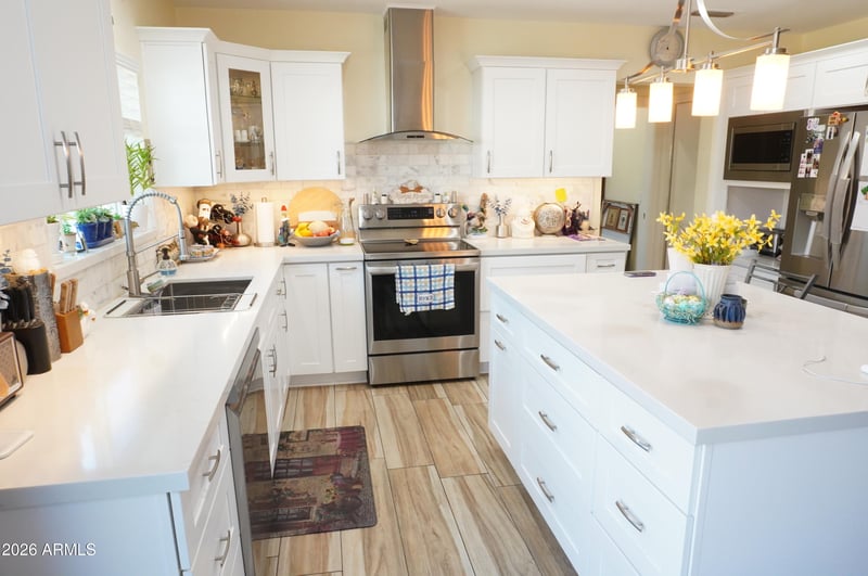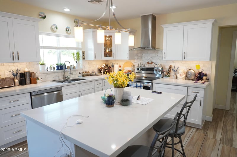 Listing details for 1550 Desert Inn Dr, Chandler, AZ 85249 : Be the first to see this beautifully remodeled house in Sun Bird. This house has one of the best remodeled kitchens you've ever seen with a large island, lots of shaker style cabinets, stainless steel appliances and quartz countertops. Three bedrooms two bathrooms with the primary bathroom being remodeled as well. New french doors lead to the low maintenance backyard. Located in the guard gated SunBird with lots of amenities like golf, pools, tennis, clubhouse and more activities than you can dream of.