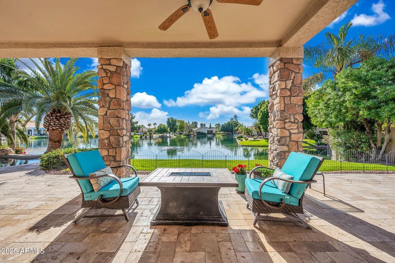 Listing details for 1551 Blue Ridge Way, Chandler, AZ 85248 : SPECTACULAR (and rare!) WIDE-OPEN WATER VIEWS ON THIS APPROX. 11,000 SQ.FT. SOUTH FACING LOT WITH DOCK! OWNED SOLAR, HEATED PEBBLETEC POOL WITH SPA AND SPILLOVER FOUNTAIN. Swim and Soak while you take in the ever-changing water view, with Herons and Egrets flying in! 4 BED/3 BATH, SPLIT BEDROOM FLOORPLAN. Open Kitchen/Family Room with views of the water. Gorgeous new Hickory Wood Flooring, Gas Fireplace w/ Stone & Wood Mantle. Kitchen w/STONE COUNTERS, WARM CABINETRY, large pantry. 3 Car EXTENDED GARAGE, EV CHARGING, EXTENSIVE CABINETRY. TANKLESS WATER HEATER, SOFT WATER SYSTEM. Front Bedroom is a perfect office space! Just too much to mention in this fabulous home in highly desirable OCOTILLO LAKES close to freeways, shopping, and GOLF. This is a rare opportunity to live your best life!